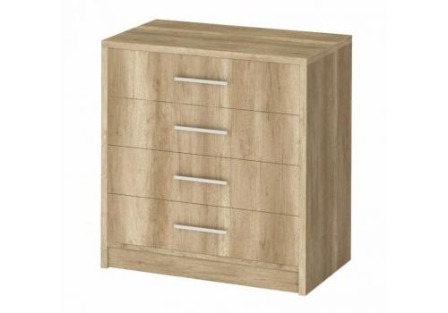 Komoda se 4 zásuvkami z kolekce GENEWA v moderním provedení. Korpus i dvířka jsou z kvalitního LTD v barvě dub country šedý. Dodáváme v demontovaném stavu.
