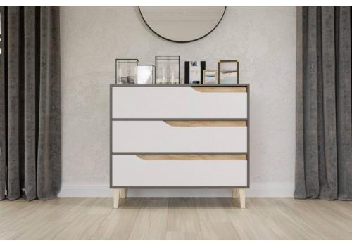 WOOD komoda se zásuvkami, antracit/bílá/dub Craft zlatý