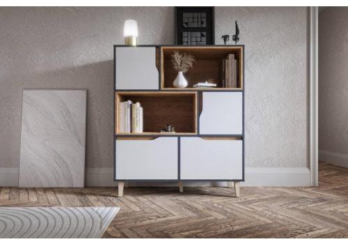 WOOD nízký regál, antracit/bílá/dub Craft zlatý