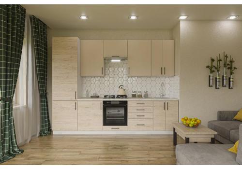 Kuchyňská linka HORLY 280 cm satin/light rockford hickory   |