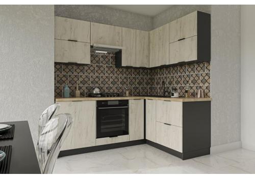 Rohová kuchyňská linka 220x160 KARAF R1 bílý craft/grafit