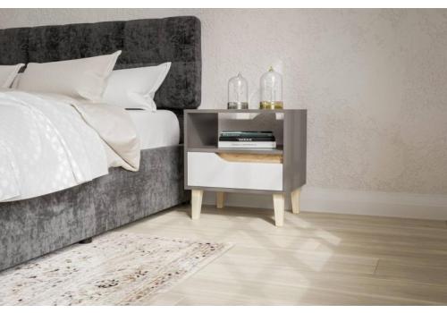 WOOD noční stolek 1S, antracit/bílá/dub Craft zlatý