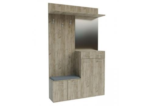 Předsíňová stěna vyrobená z kvalitní laminátové desky ( zadní panel HDF ) v barevném provedení dub kraft šedý. Sestava se skládá ( š/v/h ) - panel s věšákem a komodou ( 60 x 200 x 30 cm ) a panel se zrcadlem a botníkem se zásuvkou ( 60 x 200 x 30 ). Další rozměry viz perokresba. Sedací polštářek je v ceně (barevné provedení polštářku se od obrázku může lišit). Dodáváme v demontovaném stavu.