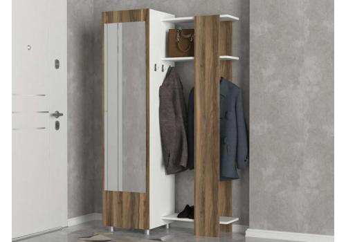 FURANO předsíňová stěna se zrcadlem, bílá/ořech