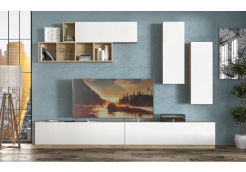 Obývací sestava VISALIA (2x skříňka závěs, 2x TV stolek, police, police s dvířky) dub artisan/bílá |