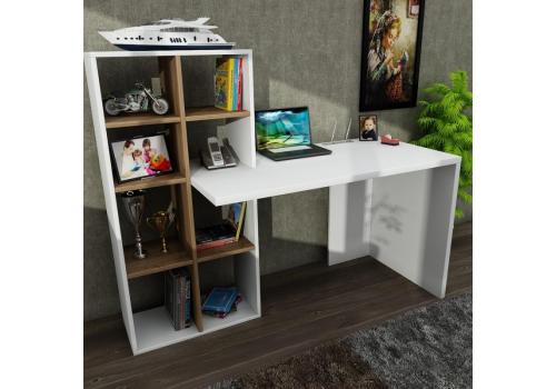 Pracovní stůl s regálem SHENDI bílá/ořech |