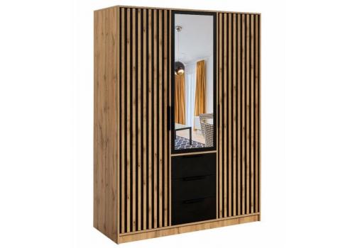 Šatní skříň BASILIO LUX 147 dub wotan/černá/zrcadlo |